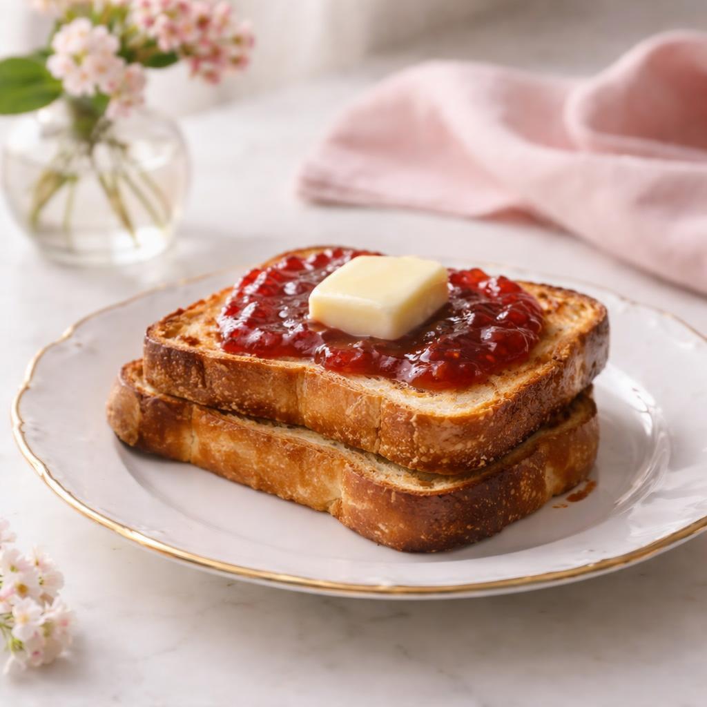 Toasted artisan bread with cultured butter and seasonal fruit preserves