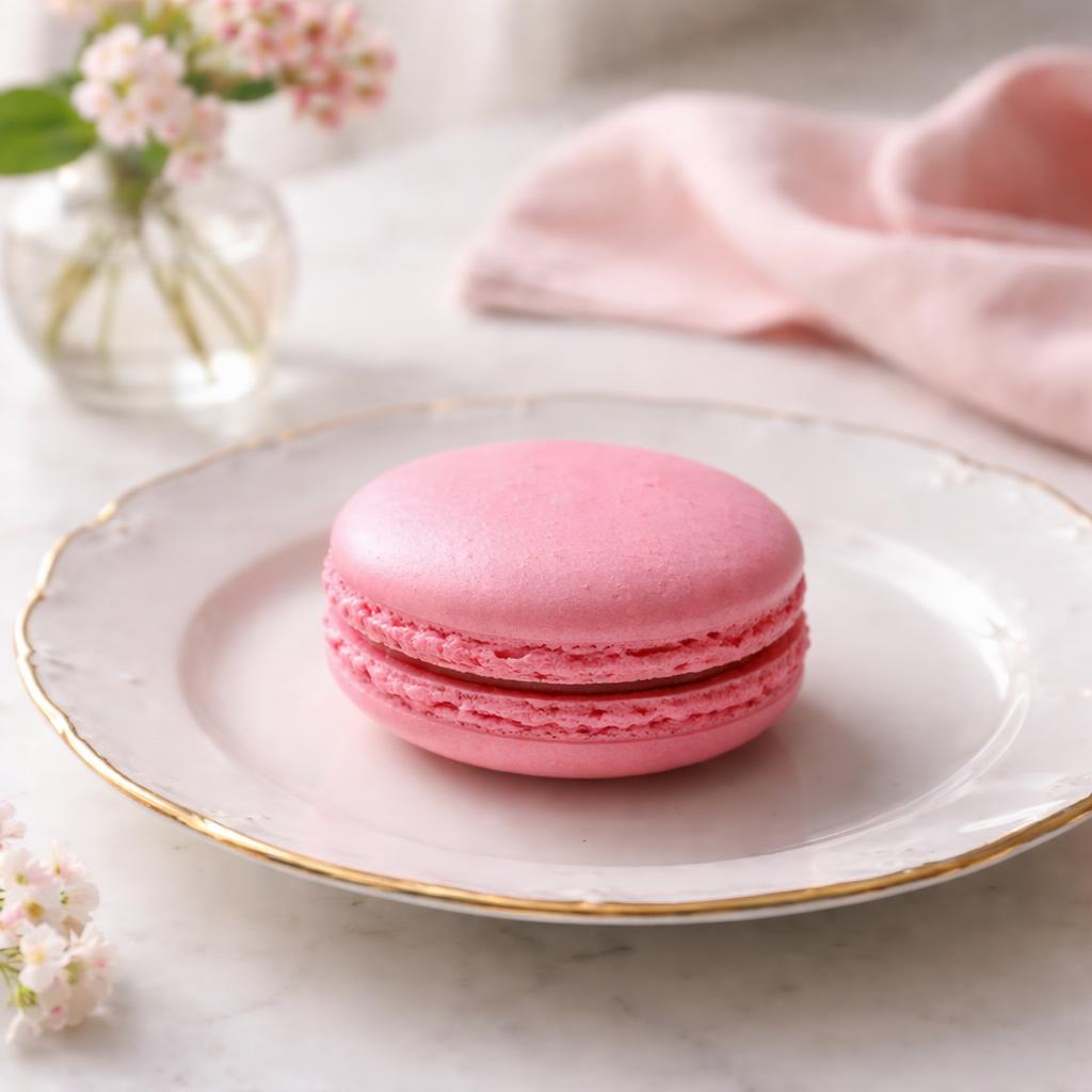 Delicate raspberry macaron with crisp shells and tangy raspberry buttercream