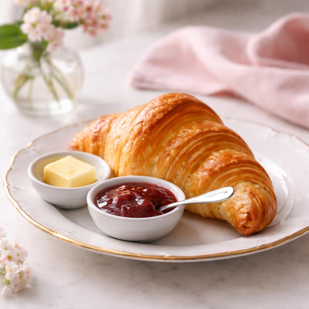 Classic French breakfast with croissant, house-made confiture, butter, and your choice of beverage