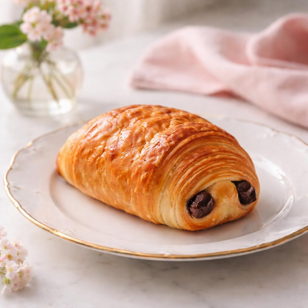 Golden viennoiserie filled with rich dark chocolate batons, the perfect indulgence with your morning café